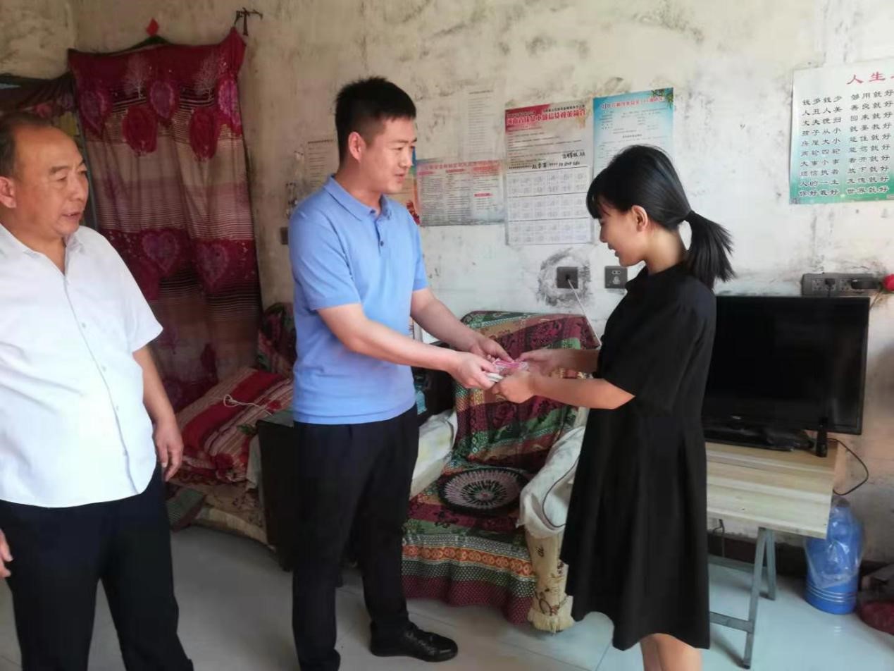 金秋將至,又是莘莘學(xué)子收獲的季節(jié),為進(jìn)一步弘揚(yáng)重視教育、尊重知識(shí)、鼓勵(lì)成才的社會(huì)風(fēng)氣,幫助貧困大學(xué)生順利進(jìn)入大學(xué)校園。 8月31日,公司總經(jīng)理助理曲笑輝,工會(huì)主席路建存在申村黨支部書(shū)記郭慶法的陪同下,深入申村貧困家庭郭亭于家中,將8000元助學(xué)金送到利用高考結(jié)束的空閑時(shí)間剛剛打工回來(lái)的郭亭于手中。
