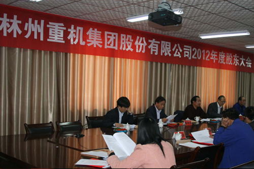 2013年4月16日下午14時(shí),林州重機(jī)集團(tuán)股份有限公司2012年度股東大會在公司一樓會議室以現(xiàn)場投票和網(wǎng)絡(luò)投票相結(jié)合的方式召開,參加本次股東大會的股東及股東代表共24人,代表公司股份328,572,401股,占公司有表決權(quán)股份總數(shù)的61.0356%,其中,現(xiàn)場出席會議的股東及股東代表14人,代表股份328,309,380 股,占公司有表決權(quán)股份總數(shù)的60.9867%;通過網(wǎng)絡(luò)投票方式參加會議的股東10人,代表股份263,021股,占公司有表決權(quán)股份總數(shù)的0.0489%。