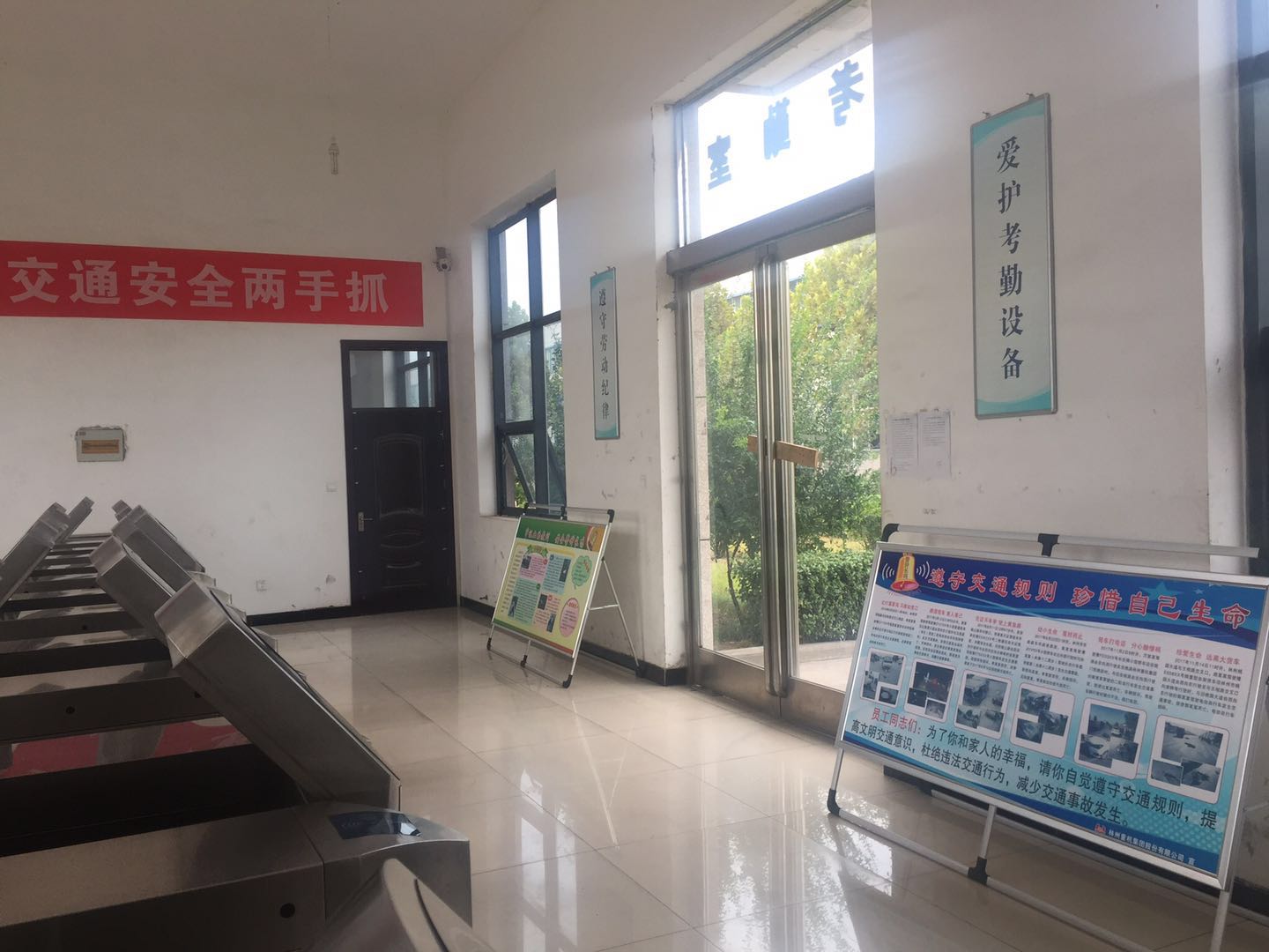 其次,公司加大宣傳力度。在公司門口、考勤室等地擺放交通安全宣傳版面,懸掛交通安全條幅,并不間斷地播放交通宣傳教育口號,提醒廣大員工上下班時刻注意交通安全,提高交通安全意識,自覺遵守交通規(guī)則。同時,要求各單位利用班前會、工作例會、車間版面及微信平臺等多種形式,對本單位員工進行交通安全教育,做到交通安全教育工作常態(tài)化、制度化。